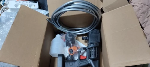*5. Powerful motor pressurizes the water flow to 5bar, easily removing the most stubborn mud and stains from outdoor household surfaces, gates, benches, garden furniture and equipment, bicycles, motorbikes, cars, steps and more.